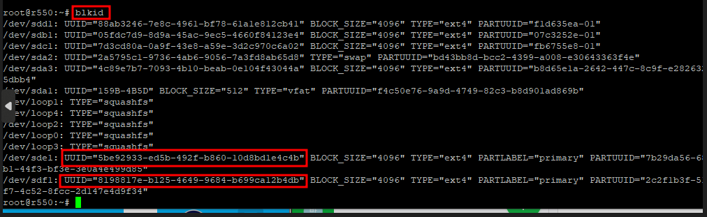 5. blkid 명령어를 통해 UUID 값을 확인해줍니다.
