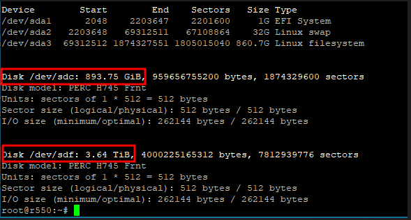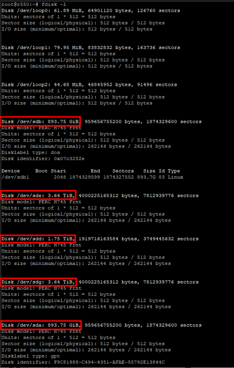 2. fdisk -l 명령어를 통해 하드들이 인식이 되었는지 확인합니다.
