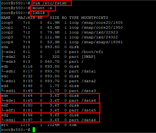 mount -a 명령어로 마운트가 잘 되었는지 확인할 수 있습니다. 오류가 있다면 띄워줍니다.