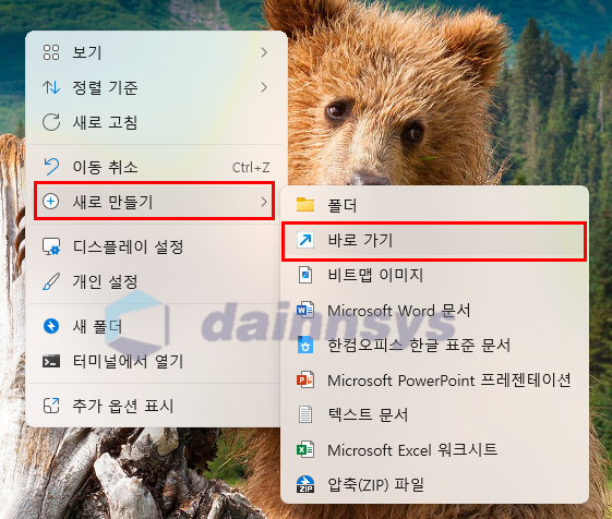 1) 바탕화면 바로가기 생성 (추천)