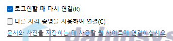 - 로그인 시 다시 연결 또는 내 자격 증명기억