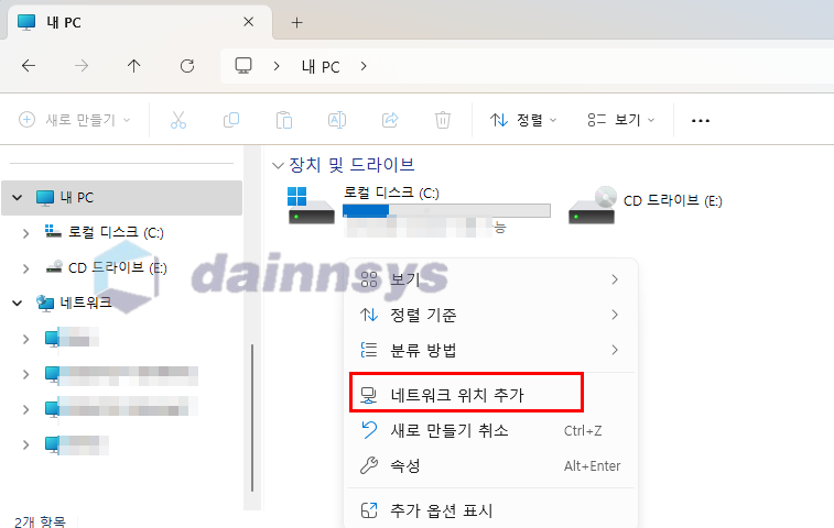 1. 파일 탐색기 → [내 PC] → 우클릭 “네트워크 드라이브 추가” 클릭 → 다음