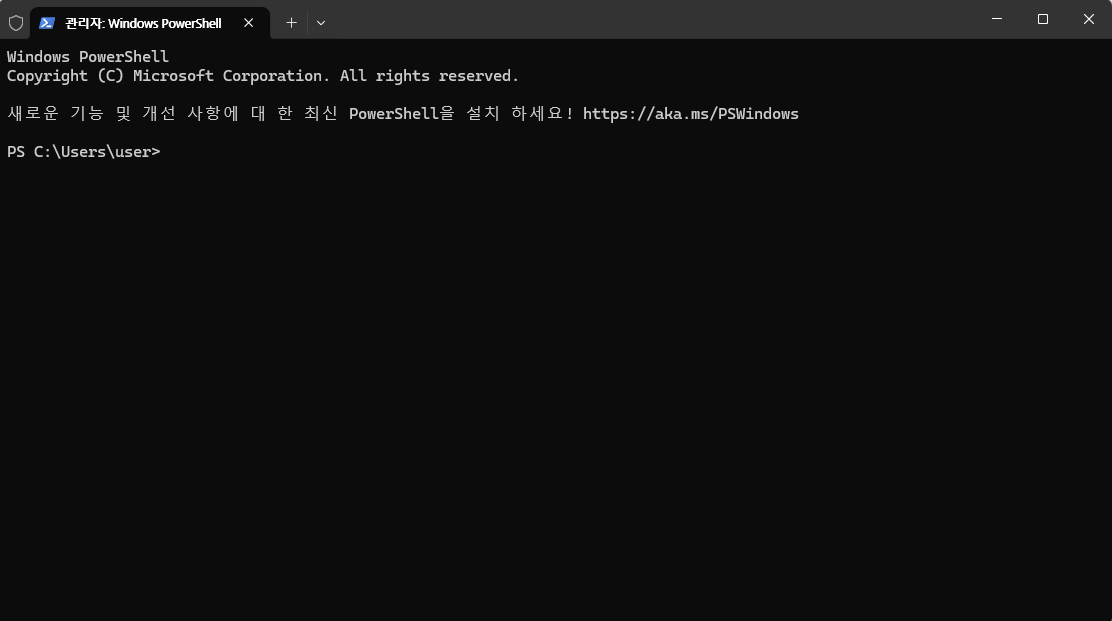 - 결과 확인: PS C:\Users\...> 처럼 앞에 PS가 붙어 있다면 준비 완료입니다.