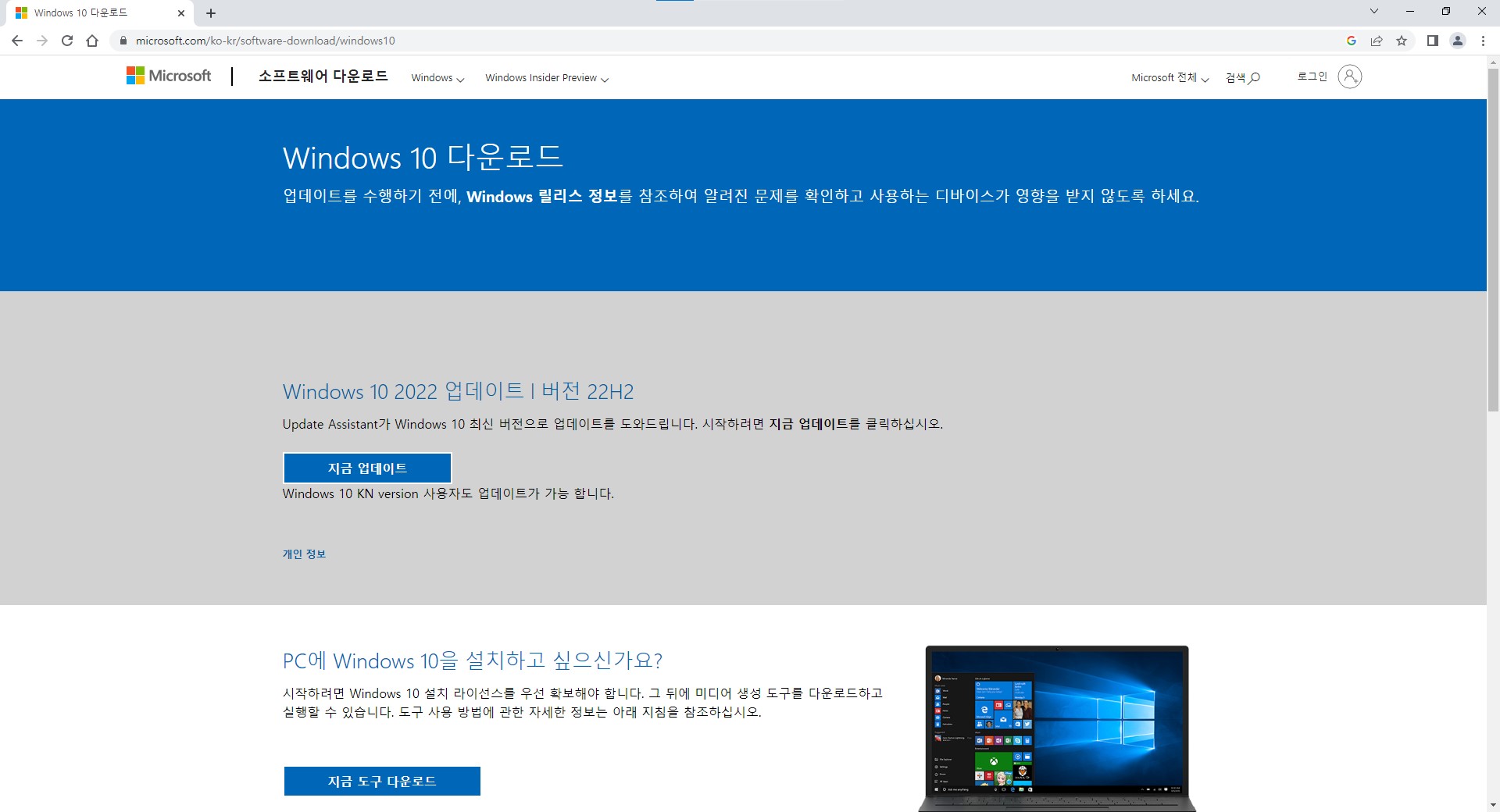 아래와 같이 화면을 조금 내린 다음 지금 도구 다운로드 부분을 선택해줍니다.