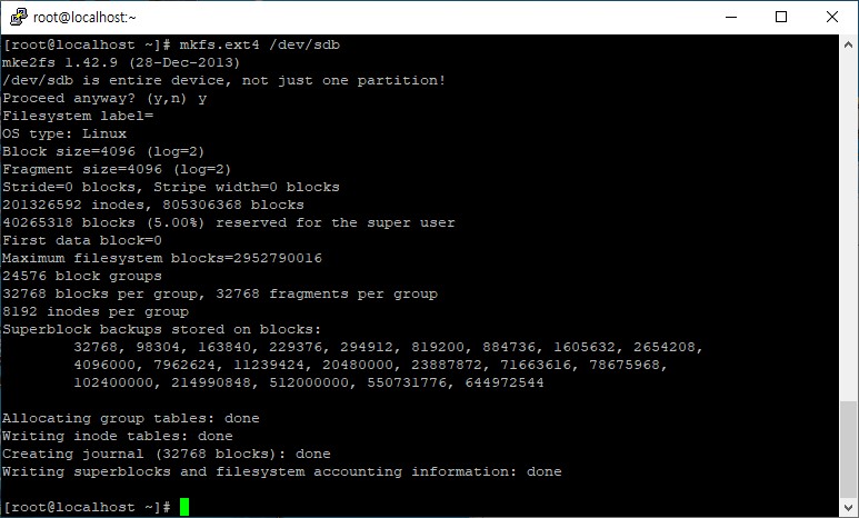 디스크 포맷이 모두 진행되고 모든 항목들이 Done이 나오면 ext4 형식으로 포맷이 완료된 것 입니다.