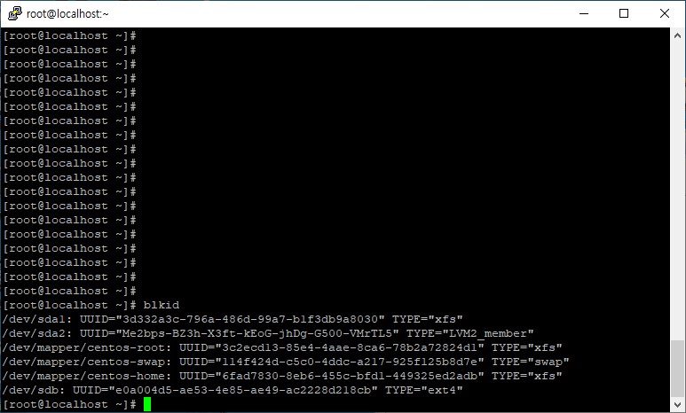 만일 해당 디스크를 시스템에서 제거해야한다면, 하단의 fstab 값을 지우고 난 다음에 디스크를 제거하시기 바람니다.